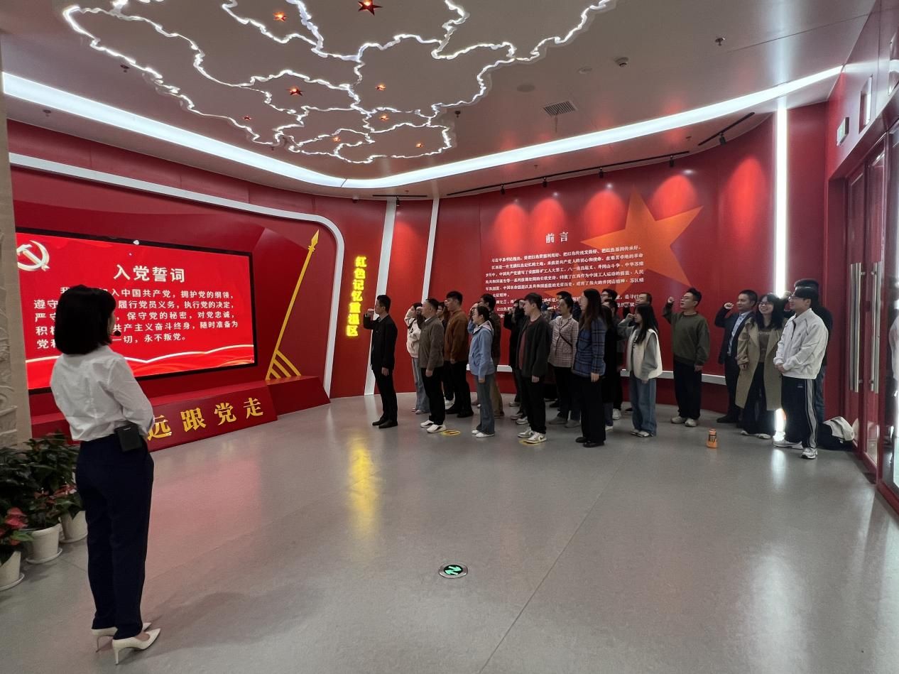 党员一行首先参观了红色图书馆特展,在党总支副书记刘平的带领下重温了入党誓词。铿锵有力的誓言回荡在馆区,不仅是一次对初心的回溯,更是一次砥砺奋进的庄严承诺,提醒每一位同志要时刻牢记党员身份,永葆政治本色和教师底色。